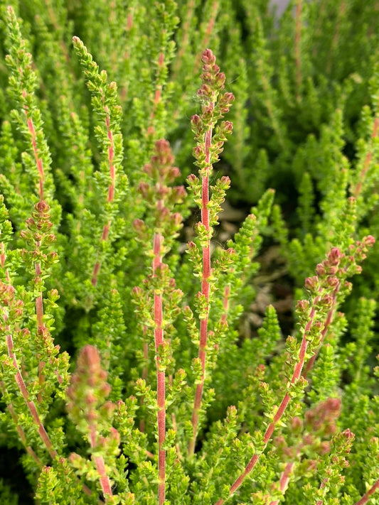 Subtle, sophisticated, and absolutely unapologetic in its beauty, Calluna ‘Kerstin’ is a heather that refuses to blend in. With silvery-gray foliage flushed with lavender-pink highlights, this evergreen stunner transforms with the seasons, deepening into bronze and purple tones in fall and winter. Come late summer, it erupts with delicate pale...