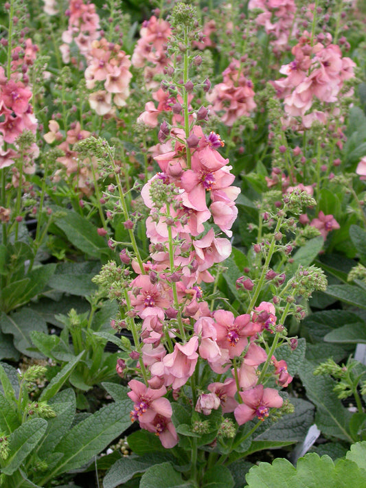A towering presence with a dreamy, old-world charm, Sugar Plum Mullein delivers stunning spires of deep lavender-purple flowers, each accented with a glowing golden eye. Rising from a base of soft, silvery-green foliage, these stately flower stalks command attention in the garden, drawing in pollinators and adding vertical drama to...