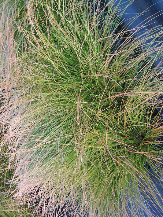 Finely textured orange-brown grass. Orange becomes more intense in winter. Ht. 12-18in, gracefully cascading form, evergreen, prefers well draining soil, Zone 6. Beautiful in a container