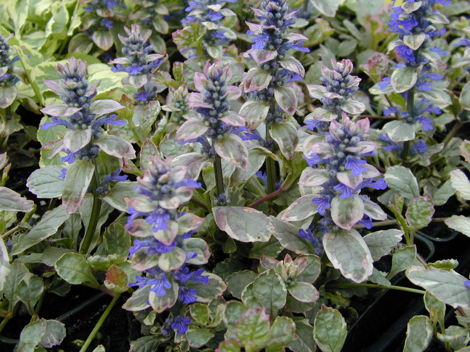 A living tapestry of shifting hues, Ajuga ‘Burgundy Glow’ Bugleweed refuses to be ignored. Its low-growing, fast-spreading foliage blends rich burgundy, creamy white, and silvery-green tones, creating an ever-changing carpet of color. In spring, it erupts with spikes of deep blue-violet flowers, adding another layer of drama to this already mesmerizing groundcover. Tough, deer-resistant, and virtually maintenance-free, this drought-tolerant beauty thrives in sun or shade, weaving its way through garden beds, spilling over containers, and softening pathways with effortless charm.