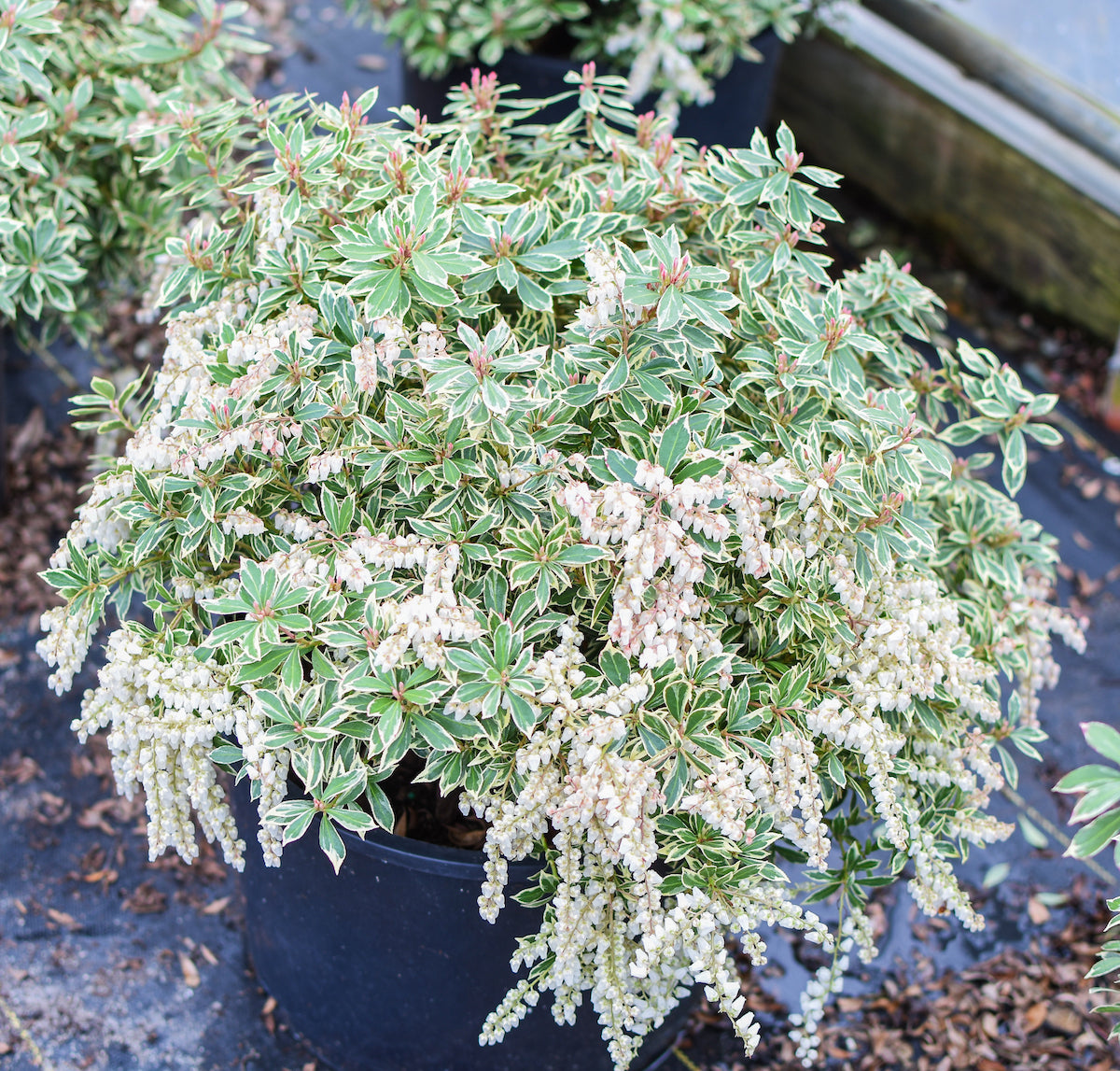 A nice, compact shrub with a variegated yellowish-green. variegation on the gray-green leaves; the new leaves are pink. In the spring, it will bloom Small, bell-shaped white flowers. A great low hedge or container plant.